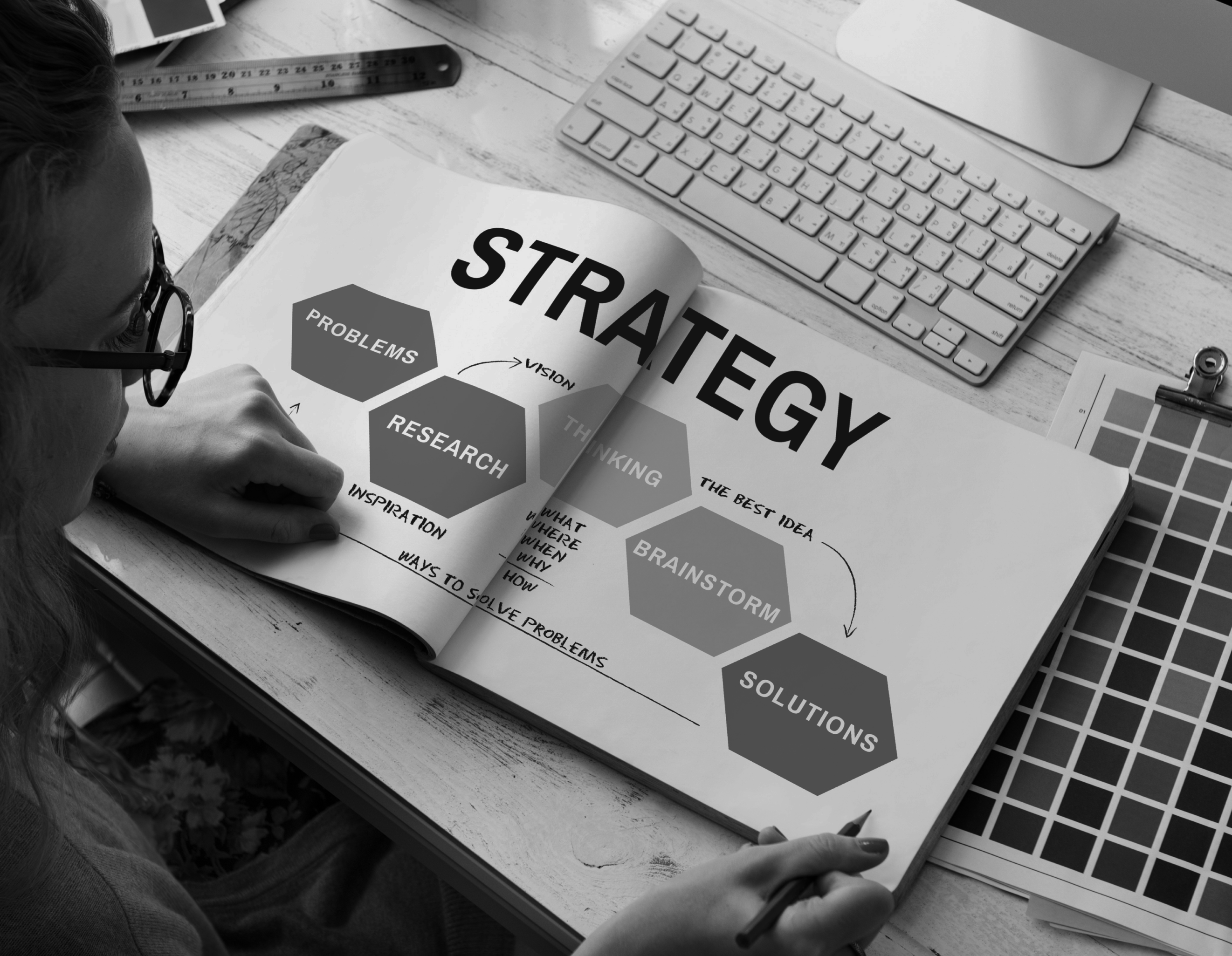 Our work with you starts off with first identifying both where you are now and where you want to be. Then we help you develop a strategy to get there. Developing a strategy is about looking at all your available resources, your current processes, bottlenecks, strengths and needs, and synthesizing all of those elements to figure out the best way to get you where you want to be.